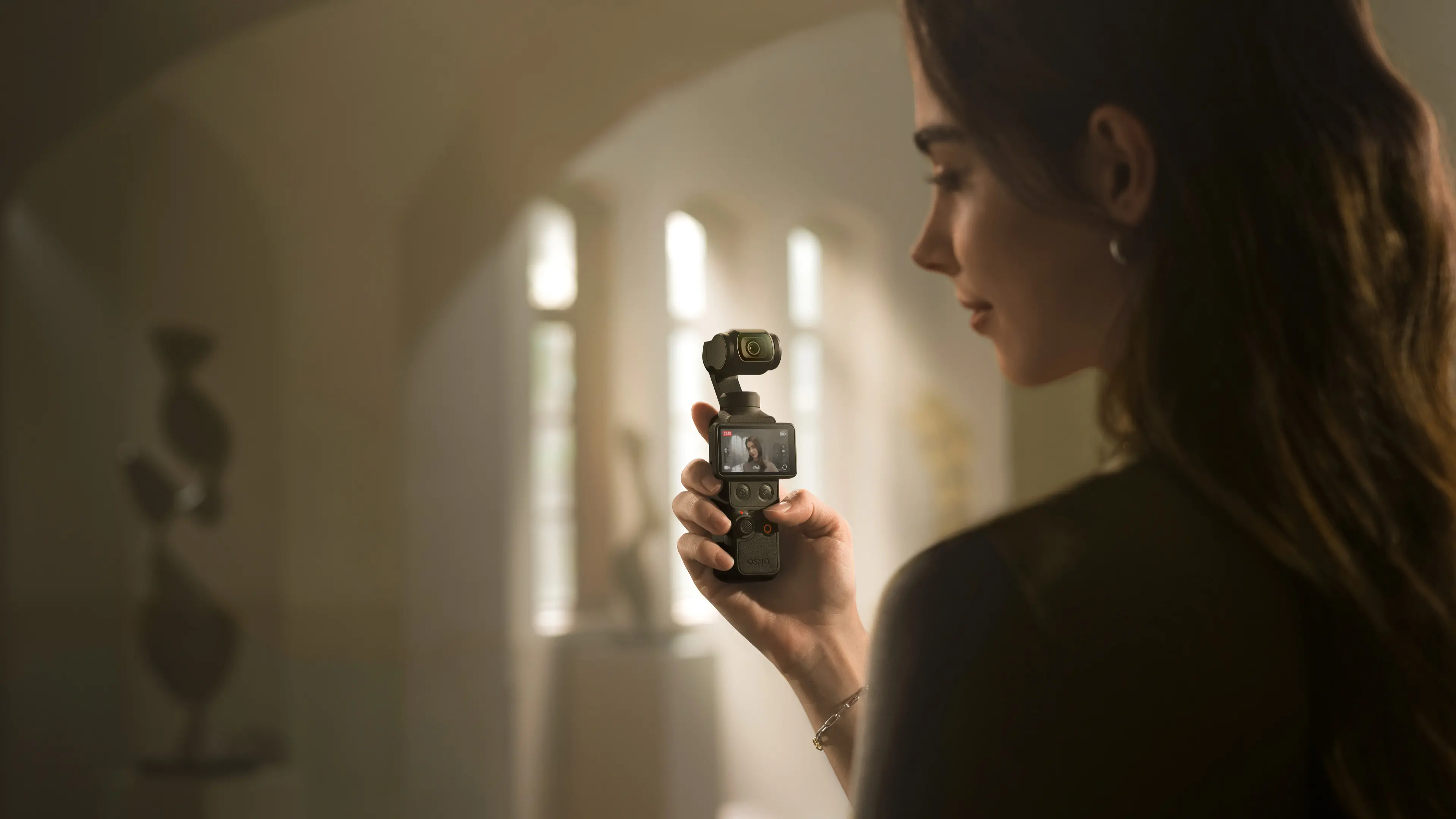 12. Перед началом записи включите функцию «Эффекты гламура» в приложении Osmo Pocket 4. После записи экспортируйте отснятый материал с помощью приложения DJI Mimo, чтобы применить эффекты гламура.
