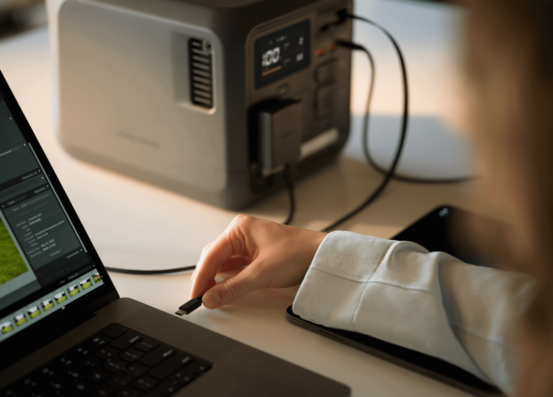 Устройство продумано до мелочей для комфортного использования. Выдвижной USB-C кабель мощностью 100 Вт обеспечивает аккуратное хранение и удобство подключения, позволяя быстро заряжать телефоны, планшеты и ноутбуки без лишней путаницы с проводами. DJI Power 1000 Mini также совместим с дронами DJI, включая серию Air 3, позволяя полностью зарядить аккумуляторы всего за 30 минут с 10% до 95%. Кроме того, управление питанием и мониторинг состояния батареи доступны через удобное приложение DJI Home, что позволяет в реальном времени контролировать температуру и работоспособность устройства, обеспечивая максимальный комфорт и контроль при работе с мобильным источником энергии.