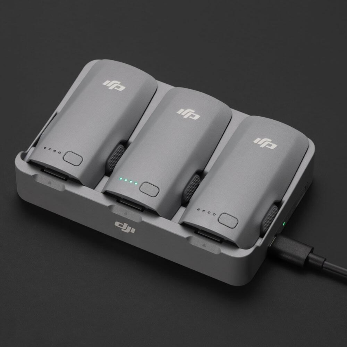 Он может хранить и заряжать батареи; при использовании с портативным зарядным устройством DJI мощностью 65 Вт он может полностью зарядить 3 интеллектуальных полетных батареи одновременно всего за 68 минут*.