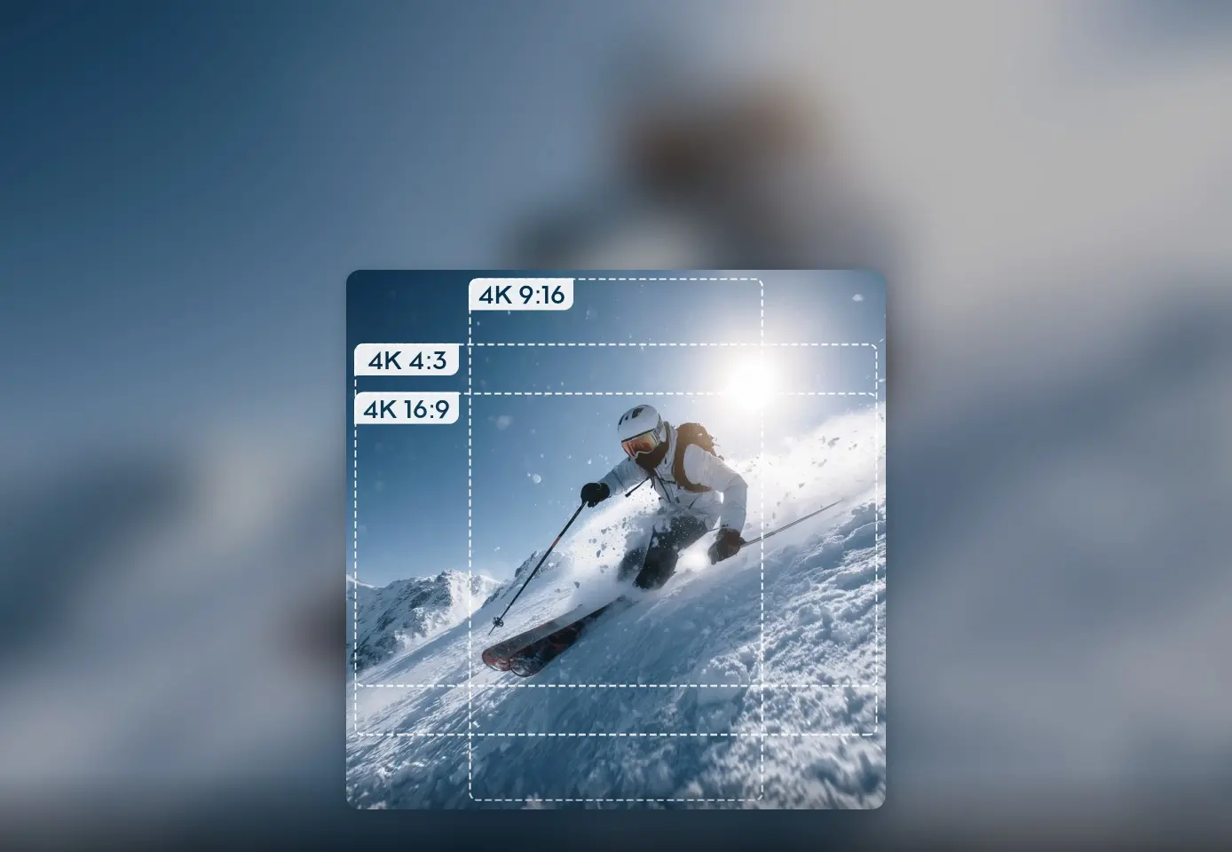 Благодаря фирменной квадратной матрице DJI, Osmo Action 6 поддерживает режим свободного кадрирования 4K, позволяющий сначала снимать, а затем кадрировать. Различные соотношения сторон кадра обеспечивают большую свободу творчества.