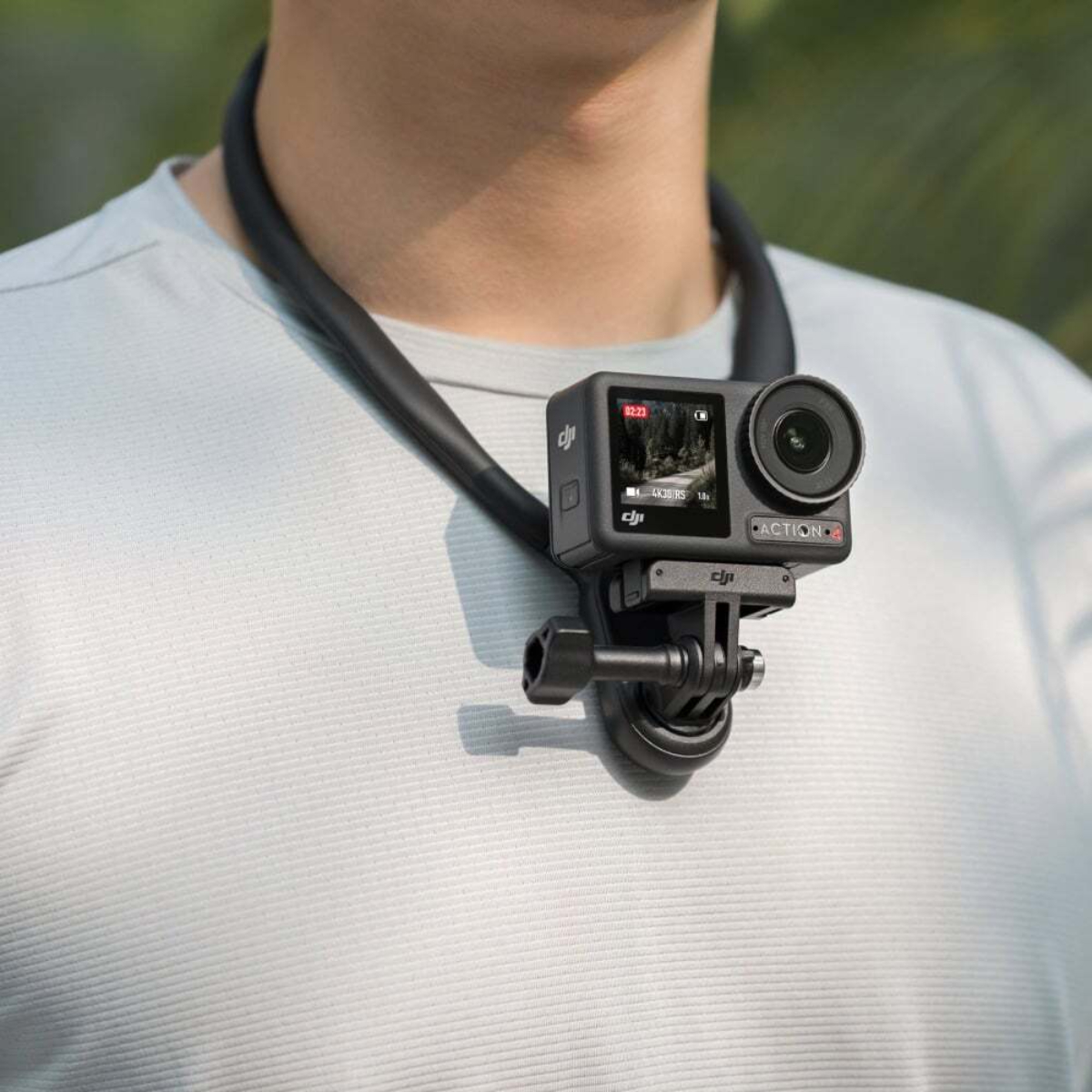 Крепление Osmo Action Osmo Action на шею — удобный аксессуар для надёжной фиксации камеры в положении POV (от первого лица). Оно позволяет снимать видео и делать фотографии, оставляя руки полностью свободными, что особенно важно при активных занятиях, путешествиях и экстремальных видах спорта.